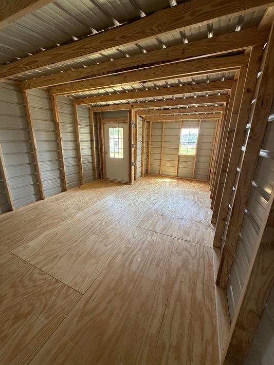 Our floors are constructed using 3/4" tongue and groove plywood, known for its strength and seamless interlocking design. This ensures a sturdy, smooth, and level floor with minimal movement or squeaks, even under heavy use.